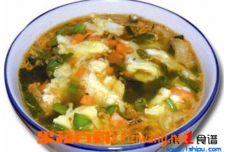 对于紫菜蛋花汤的做法不知道有几个朋友知道的呢?不清楚的朋友请看下面小编给您准备的知识。 紫菜蛋花汤 紫菜蛋花汤的做法简单,是汤粥的做法菜谱里的常见菜,紫菜蛋花汤口味属于咸鲜,做法属煮...